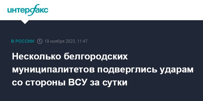 Москва. 19 ноября. INTERFAX.RU - Губернатор Белгородской области Вячеслав Гладков сообщил об ударах ВСУ по нескольким районам за минувшие сутки.
