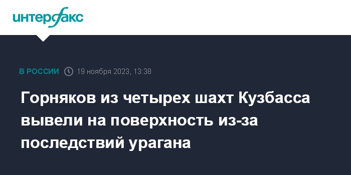Горняков из четырех шахт Кузбасса вывели на поверхность из-за последствий урагана