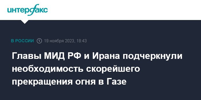 Главы МИД РФ и Ирана подчеркнули необходимость скорейшего прекращения огня в Газе