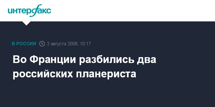 Москва. 2 августа. INTERFAX.RU - Двое россиян погибли на юге Франции в результате крушения планера.
