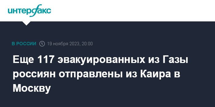 Еще 117 эвакуированных из Газы россиян отправлены из Каира в Москву