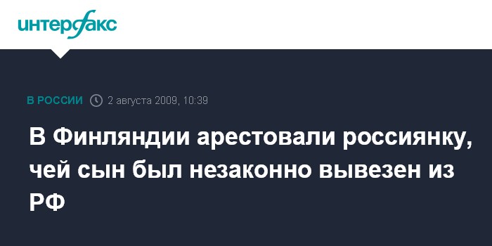 Москва. 2 августа. INTERFAX.RU - В Финляндии арестована россиянка Римма Салонен - мать ребёнка, которого весной этого года незаконно из России вывез его собственный отец. Финская полиция официально проинформировала об аресте российских дипломатов, сейчас они разбираются в ситуации.