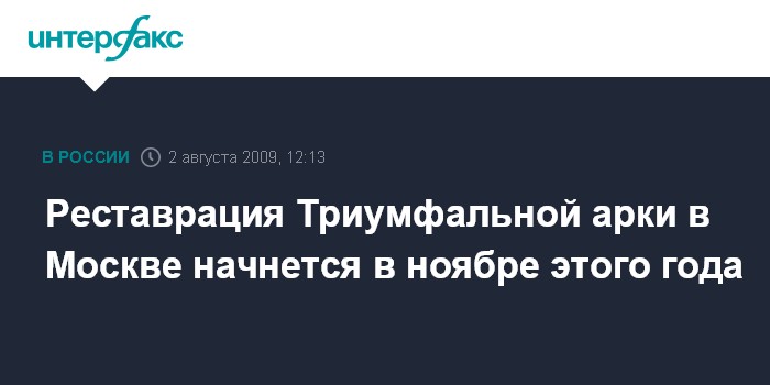 Москва. 2 августа. INTERFAX.RU - Реставрация Триумфальной арки на Кутузовском проспекте начнется в ноябре и продлится полтора года, сообщил глава Москомнаследия Валерий Шевчук.