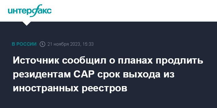 Источник сообщил о планах продлить резидентам САР срок выхода из иностранных реестров