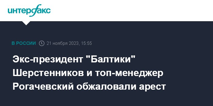 Экс-президент "Балтики" Шерстенников и топ-менеджер Рогачевский обжаловали арест