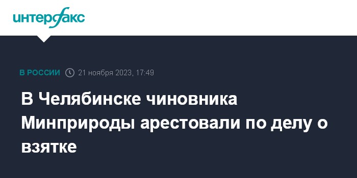 По его сведениям, 20 ноября сотрудники регионального УФСБ задержали чиновника в аэропорту "Шереметьево", когда он собирался вылететь из Москвы, и доставили в Челябинск для следственных действий по уголовному делу по ч. 6 ст. 290 УК (получение взятки) и избрания меры пресечения.