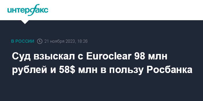 Суд взыскал с Euroclear 98 млн рублей и 58$ млн в пользу Росбанка