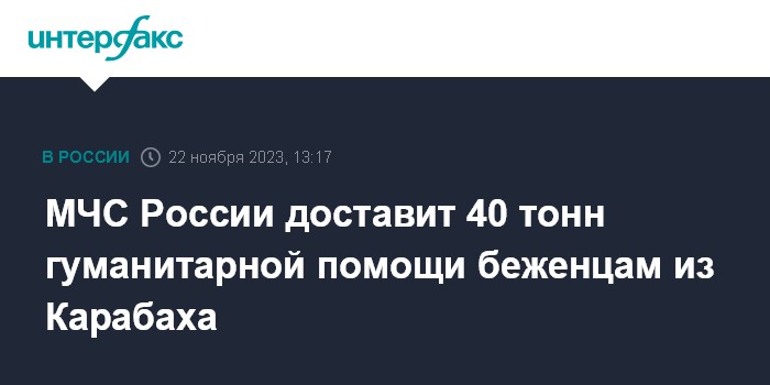 Москва. 22 ноября. INTERFAX.RU - МЧС России по указанию президента и поручению правительства доставит в Армению гуманитарную помощь беженцам из Нагорного Карабаха, сообщила пресс-служба министерства.