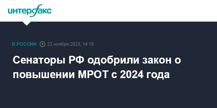 Сенаторы РФ одобрили закон о повышении МРОТ с 2024 года