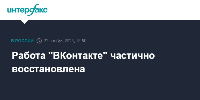 Москва. 22 ноября. INTERFAX.RU - Центр мониторинга и управления сетью связи общего пользования (ЦМУ ССОП) зафиксировал частичное восстановление сервисов "ВКонтакте".