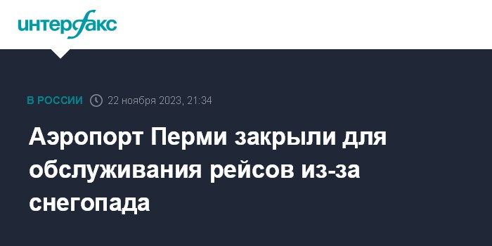 Москва. 22 ноября. INTERFAX.RU - Международный аэропорт "Пермь" временно не обслуживает рейсы из-за ухудшения погоды, сообщается в среду в телеграм-канале аэропорта.