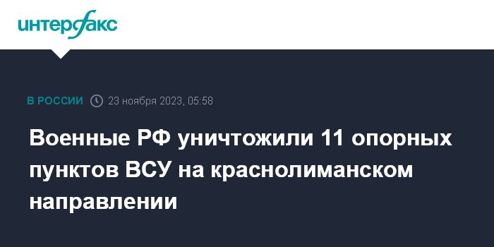 Военные РФ уничтожили 11 опорных пунктов ВСУ на краснолиманском направлении