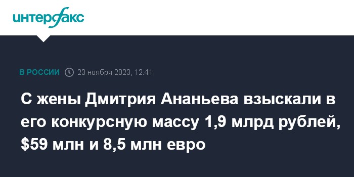 С жены Дмитрия Ананьева взыскали в его конкурсную массу 1,9 млрд рублей, $59 млн и 8,5 млн евро