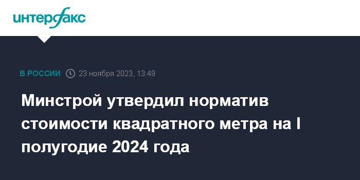 Минстрой утвердил норматив стоимости квадратного метра на I полугодие 2024 года