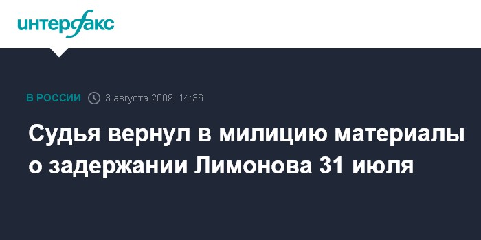 Лимонов заявил "Интерфаксу", что судья, рассматривавший в дело о его задержании, принял решение вернуть все документы в милицию. Oппозиционер "зол, что нет на руках судебного решения". По его мнению, документы были намеренно составлены так, чтобы оставить наше задержание без последствий. "Нас задержали незаконно, но судебного решения нет, и оно не может быть обжаловано", - сказал Лимонов.
