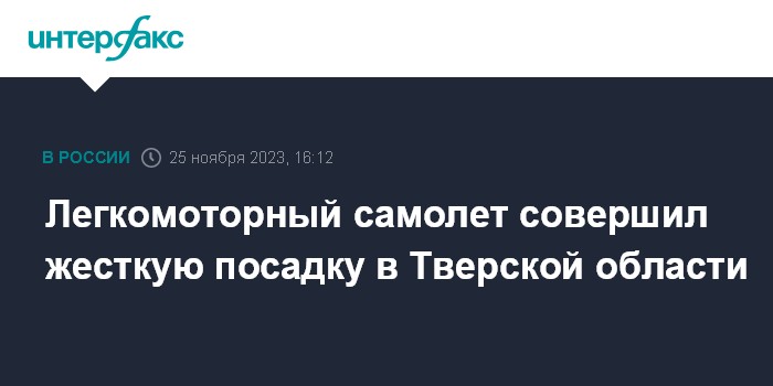 Легкомоторный самолет совершил жесткую посадку в Тверской области