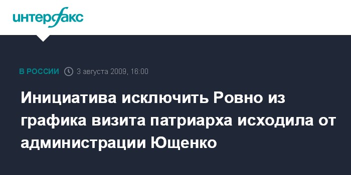 Ровно. 3 августа. INTERFAX.RU - Причиной изменения графика визита патриарха Московского и всея Руси Кирилла на Украину послужили настоятельные рекомендации администрации президента Виктора Ющенко, подчеркивают в Русской православной церкви.