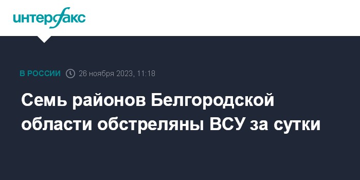 Москва. 26 ноября. INTERFAX.RU - Губернатор Белгородской области Вячеслав Гладков сообщил в воскресенье в своем телеграм-канале об ударах, нанесенных ВСУ по территории региона за минувшие сутки.