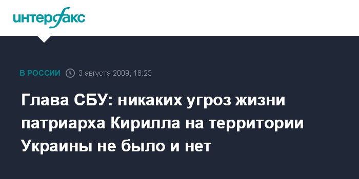 Москва. 3 августа. INTERFAX.RU - Никаких угроз жизни и здоровью патриарха Московского и всея Руси Кирилла на территории Украины не было и нет, утверждает глава Службы безопасности Украины Валентин Наливайченко.