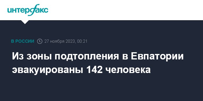 Москва. 27 ноября. INTERFAX.RU - Спасатели эвакуировали из зоны подтопления в Евпатории 142 человека, сообщила пресс-служба МЧС РФ.