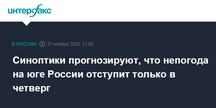 Москва. 27 ноября. INTERFAX.RU - Улучшение погоды на юге России прогнозируется в четверг, сообщил "Интерфаксу" научный руководитель Гидрометцентра РФ Роман Вильфанд.