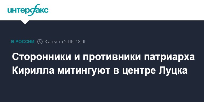 Напротив толпы православных верующих по другую сторону дороги стоит около двухсот сторонников лидера непризнанного в православном мире "Киевского патриархата" Филарета Денисенко. Они постоянно кричат "Геть московского попа!", объявляют в мегафоны о своем несогласии с приездом в Луцк патриарха Кирилла.