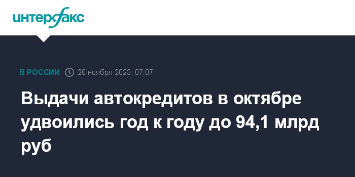 Выдачи автокредитов в октябре удвоились год к году до 94,1 млрд руб