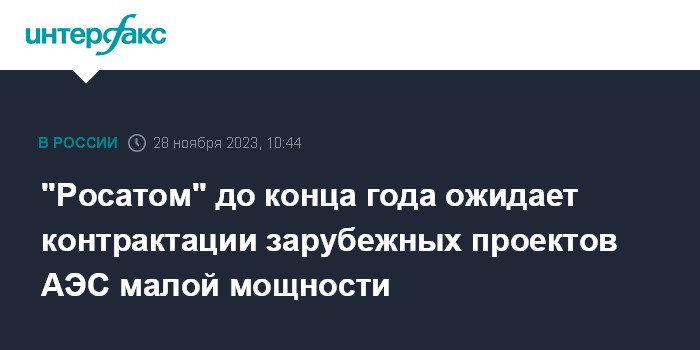 "Росатом" до конца года ожидает контрактации зарубежных проектов АЭС малой мощности