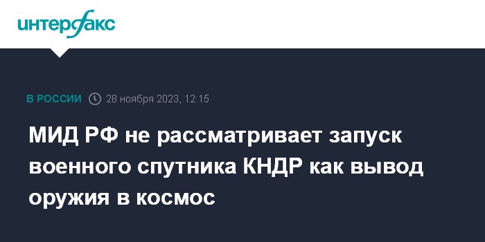 МИД РФ не рассматривает запуск военного спутника КНДР как вывод оружия в космос