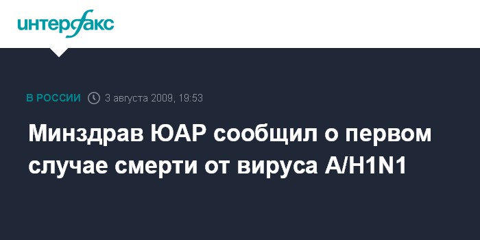 Согласно заявлению министерства здравоохранения ЮАР, жертвой вируса стал 22-летний студент, который скончался в больнице Кейптауна 28 июля. За неделю до этого он почувствовал себя плохо, а 26 июля поступил на лечение с диагнозом "пневмония". Студенту был назначен курс антибиотиков, однако молодой человек умер. Как показало вскрытие, причиной смерти стало заражение вирусом A/H1N1.