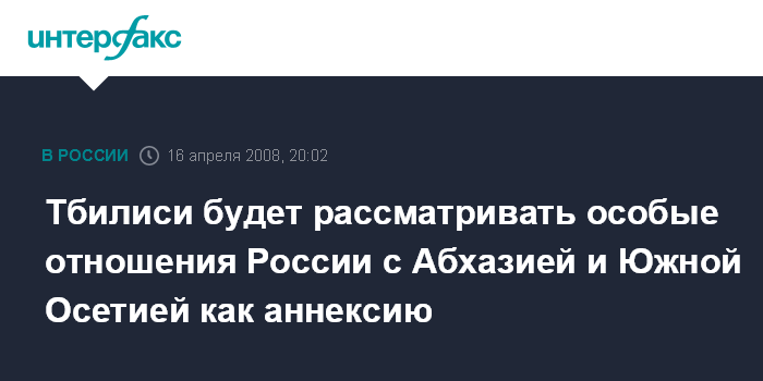 "В случае установления Россией особых отношений с Абхазией и Южной Осетией это будет расцениваться, как аннексия территории Грузии и грубое нарушение международных норм по признанию территориальной целостности государств", - сказал Д.Бакрадзе журналистам после окончания заседания Совбеза Грузии в среду.