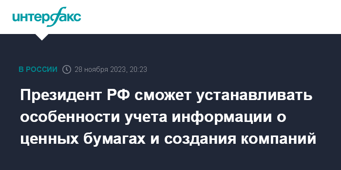 Президент РФ сможет устанавливать особенности учета информации о ценных бумагах и создания компаний