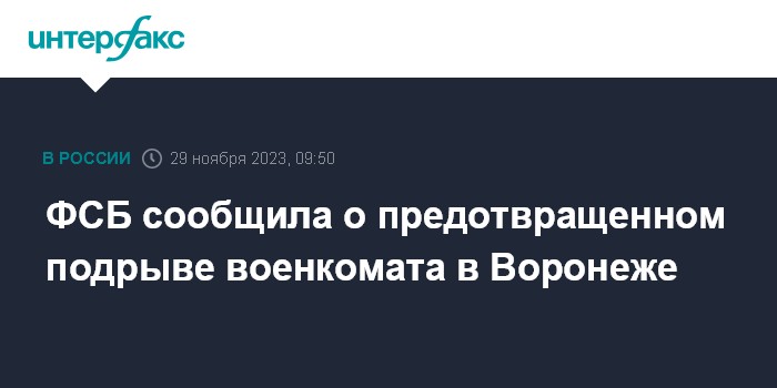 ФСБ сообщила о предотвращенном подрыве военкомата в Воронеже