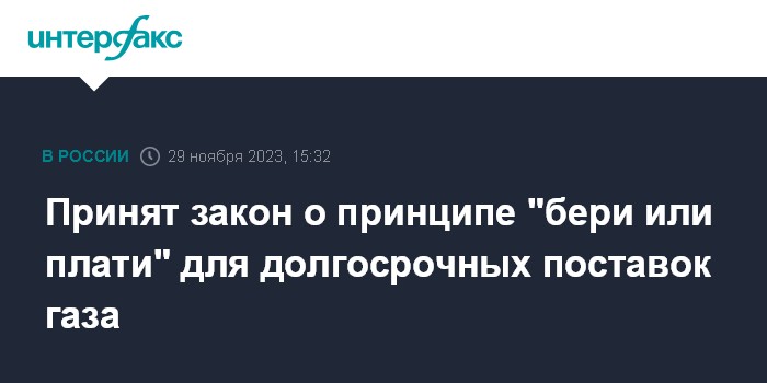 Принят закон о принципе "бери или плати" для долгосрочных поставок газа