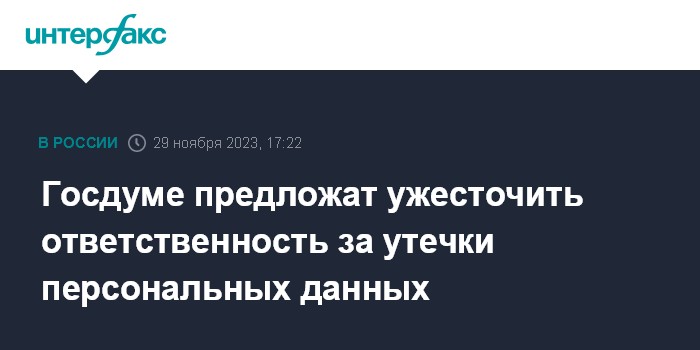 Госдуме предложат ужесточить ответственность за утечки персональных данных