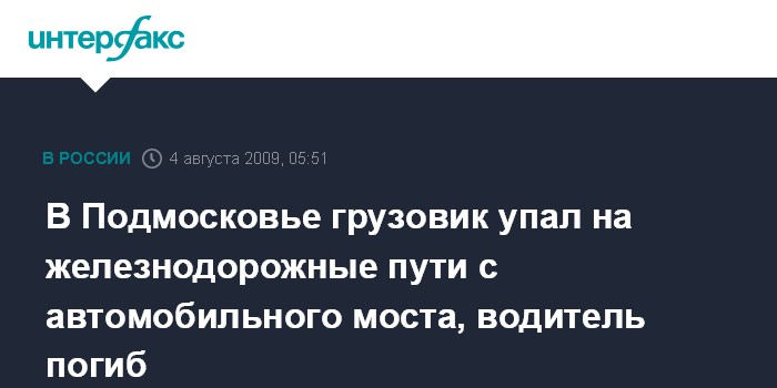 Москва. 4 августа. ИНТЕРФАКС-МОСКВА - На 174 км Большого кольца Московской железной дороги с автомобильного моста упал грузовой автомобиль, сообщил "Интерфаксу" во вторник руководитель службы по связям с общественностью Московской железной дороги (МЖД) Владимир Мягков.