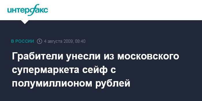 Грабители унесли из московского супермаркета сейф с полумиллионом рублей