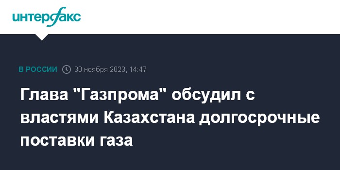 В ноябре 2023 года "Газпром" и правительство Казахстана подписали соглашение о стратегическом сотрудничестве. Документ направлен на развитие взаимодействия в области поставки, транспортировки и переработки природного газа, а также его геологоразведки и добычи.