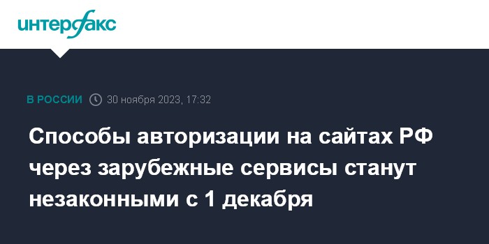 Способы авторизации на сайтах РФ через зарубежные сервисы станут незаконными с 1 декабря