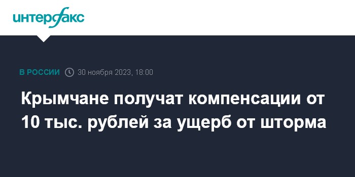 Москва. 30 ноября. INTERFAX.RU - Жители Крыма, чье имущество пострадало в результате шторма, получат компенсации в зависимости от степени ущерба, сообщил глава республики Сергей Аксенов.