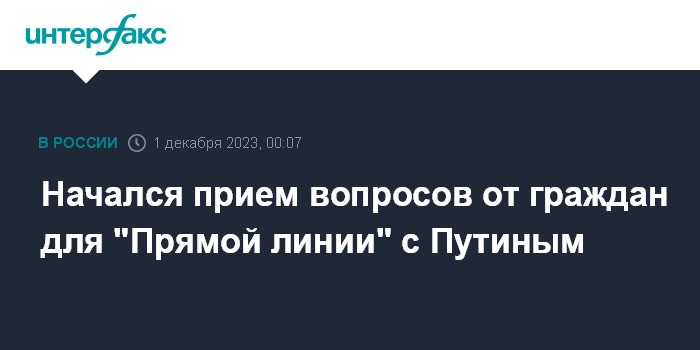 Москва. 1 декабря. INTERFAX.RU - В пятницу стартует прием вопросов от россиян для "Прямой линии" и большой пресс-конференции, которые президент РФ Владимир Путин проведет в совместном формате 14 декабря.