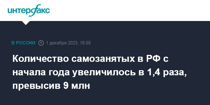 Количество самозанятых в РФ с начала года увеличилось в 1,4 раза, превысив 9 млн