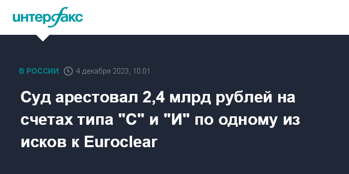 Суд арестовал 2,4 млрд рублей на счетах типа "С" и "И" по одному из исков к Euroclear