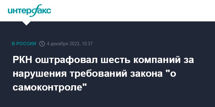 РКН оштрафовал шесть компаний за нарушения требований закона "о самоконтроле"