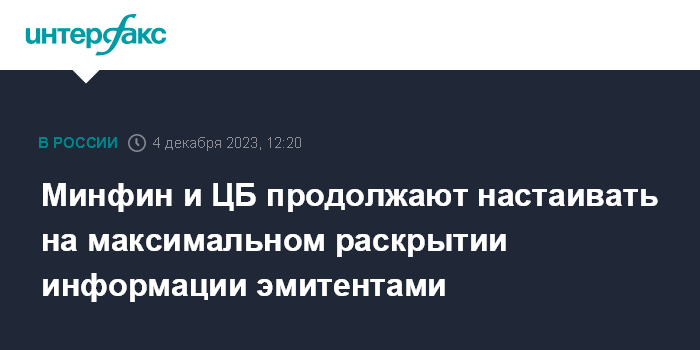 Минфин и ЦБ продолжают настаивать на максимальном раскрытии информации эмитентами