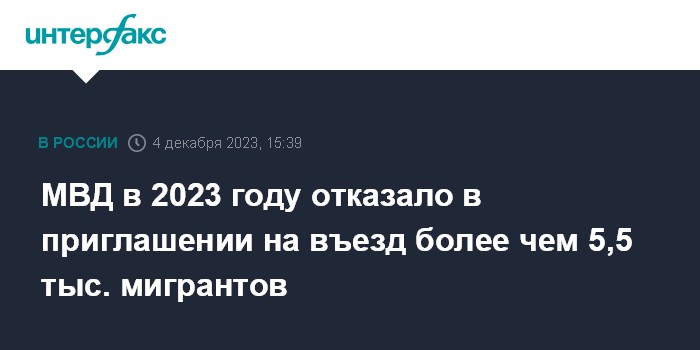 МВД в 2023 году отказало в приглашении на въезд более чем 5,5 тыс. мигрантов