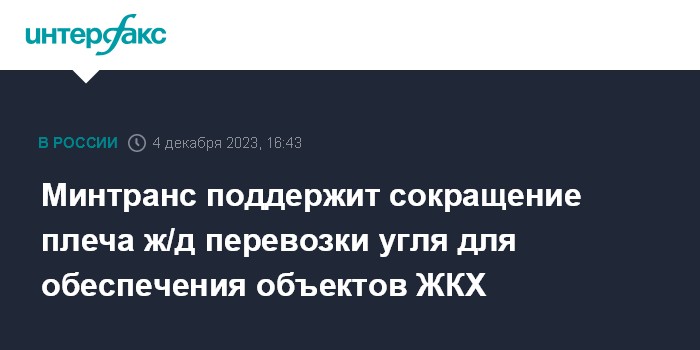 Минтранс поддержит сокращение плеча ж/д перевозки угля для обеспечения объектов ЖКХ