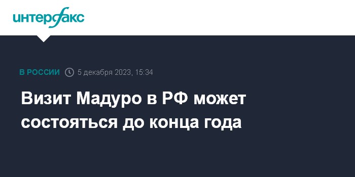 Москва. 5 декабря. INTERFAX.RU - Визит президента Венесуэлы Николаса Мадуро в Россию может состояться до конца текущего года, заявил помощник президента РФ Юрий Ушаков.