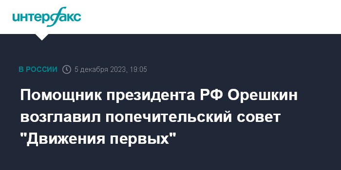Помощник президента РФ Орешкин возглавил попечительский совет "Движения первых"