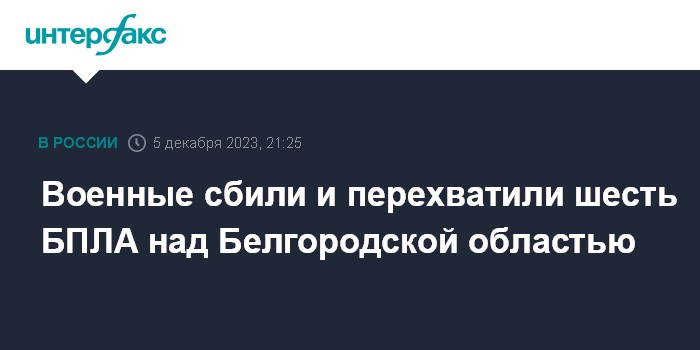 Москва. 5 декабря. INTERFAX.RU - Над Белгородской областью российские дежурные силы ПВО сбили три украинских беспилотника и еще три летательных беспилотных аппарата были перехвачены, сообщило Минобороны России.